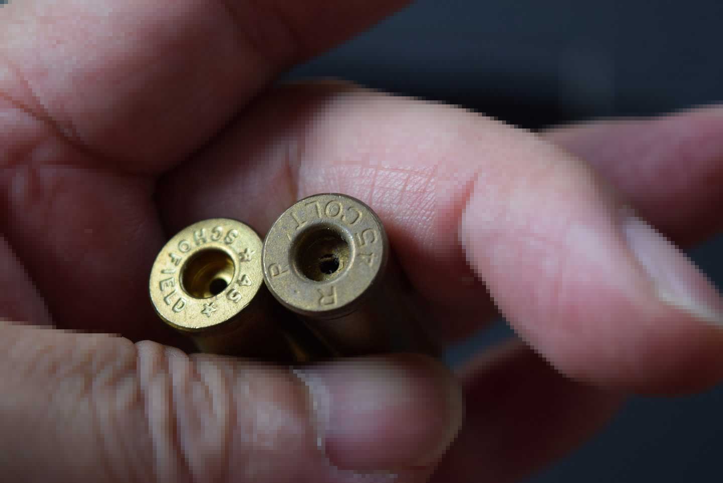 スコーフィールド弾は45コルトに比べてケースが短いです。ジョージ・スコーフィールド少佐が軍に勧めた時に、軍からは