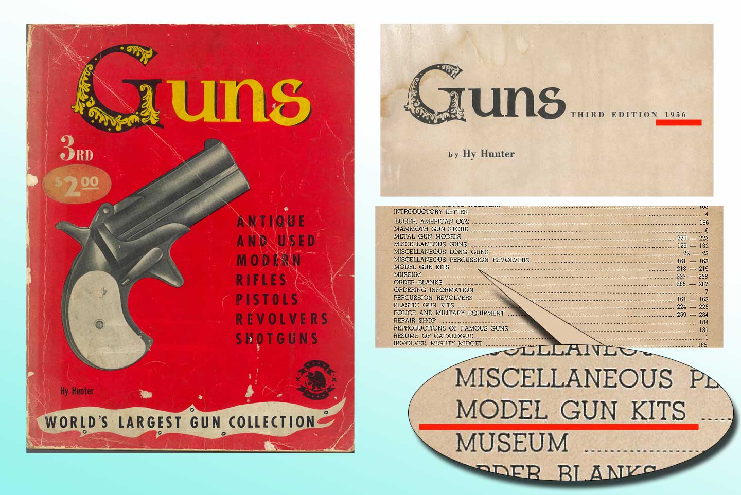 色々広告を見ても「モデルガン」の文字は1956年の2種類の広告のみにしか見られません。 上の広告にはメタル・ガン・モデルズ となっており、モデル・ガンという言い方は 英語圏の人にとって違和感のある呼び方だったので、そうそうに使うのをやめたのかもしれません。 このへん想像です、ネイティブの人にでも聞いてみてください。