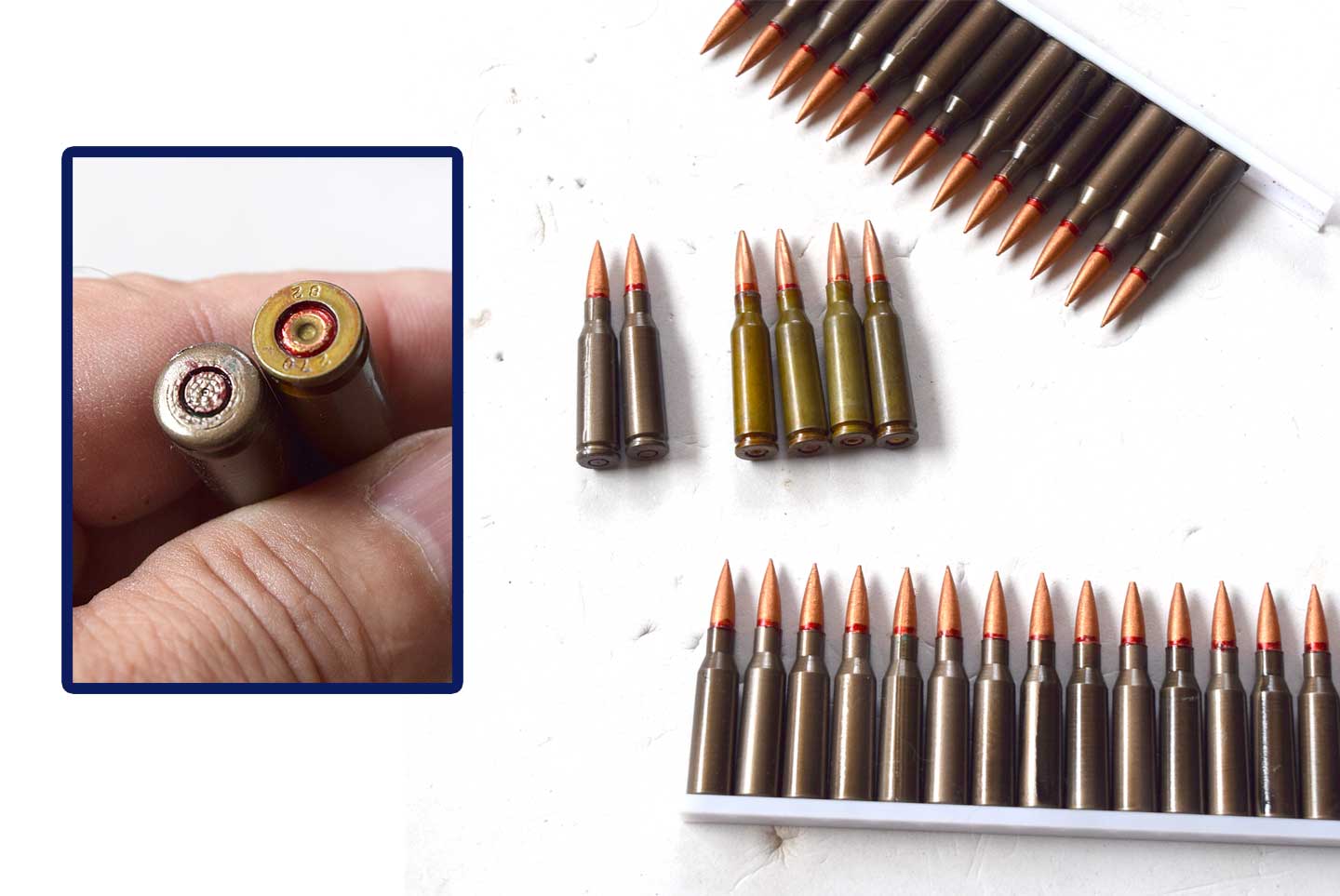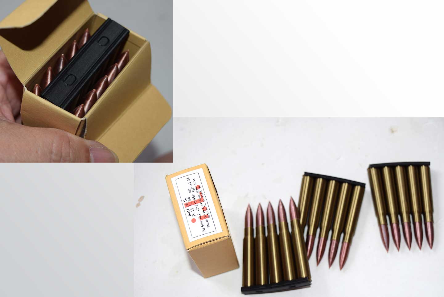 この写真をご覧ください。ロシア系で使用される5.45mm弾のダミーカートと3D作品です。