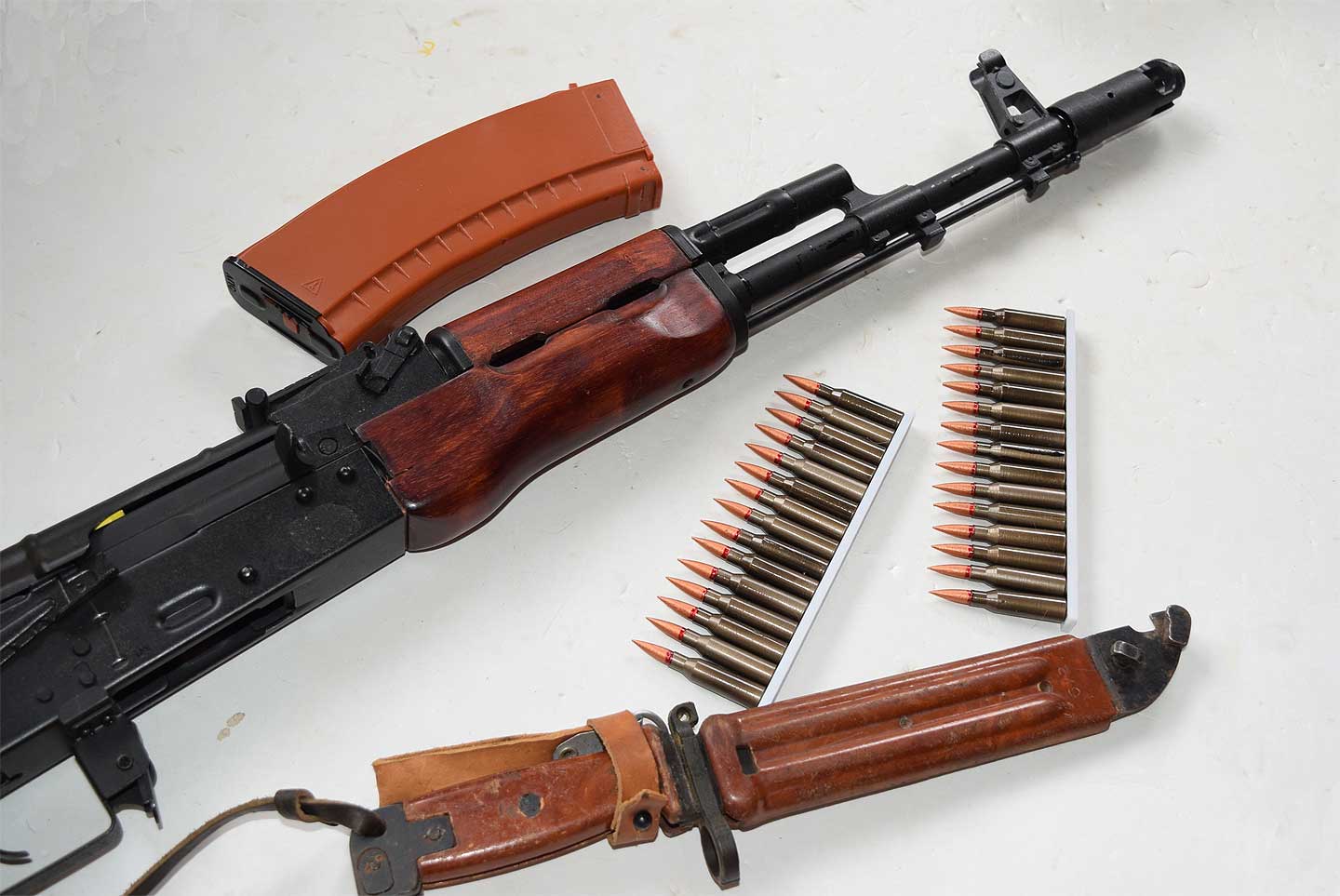 AK74 などの小物に使用できます。右写真は電動ガンと共に。